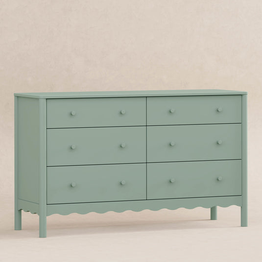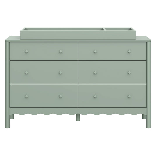 With rounded posts and wave-like edges, the Swell 6-Drawer Assembled Dresser has a modern appeal with an ocean-inspired design that pairs perfectly with the Swell 4-in-1 Convertible Crib. Featuring six spacious and smooth-gliding drawers, this dresser provides ample space for all of your baby's necessities. With additional versatility to add an optional removable changing tray, the Swell Assembled Dresser is perfect storage solution for your newborn and beyond.
