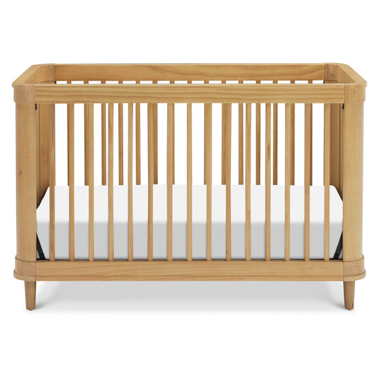 Ease into contemporary style with the Marin 3-in-1 Convertible Crib. Featuring a gently curved silhouette with solid rounded cane side panels, the Marin is an effortlessly transitional piece for the home. Crib converts to a toddler bed and daybed, and fits any standard full-size crib mattress.