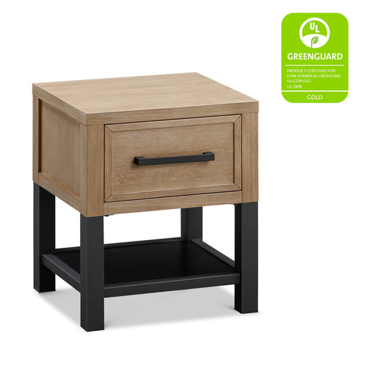 The Newbern Nightstand pairs clean lines with a metal base for a fresh take on farmhouse style. A smooth-glide drawer and open lower space offer practical storage, while the textured finish adds a refined touch.