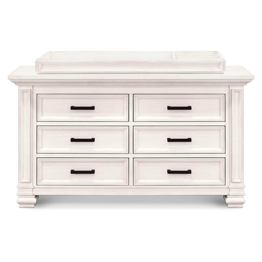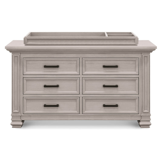 With intricate molding details adorning each side, the Palermo Changing Tray is perfect for adding stylized function to your Palermo 6-Drawer Dresser. The changing tray secures to the dresser using safety brackets, converting it into a changing table, and includes space for a changing pad as well as two compartments for your baby’s necessities. The tray is easily removable, allowing your dresser to grow with your baby.